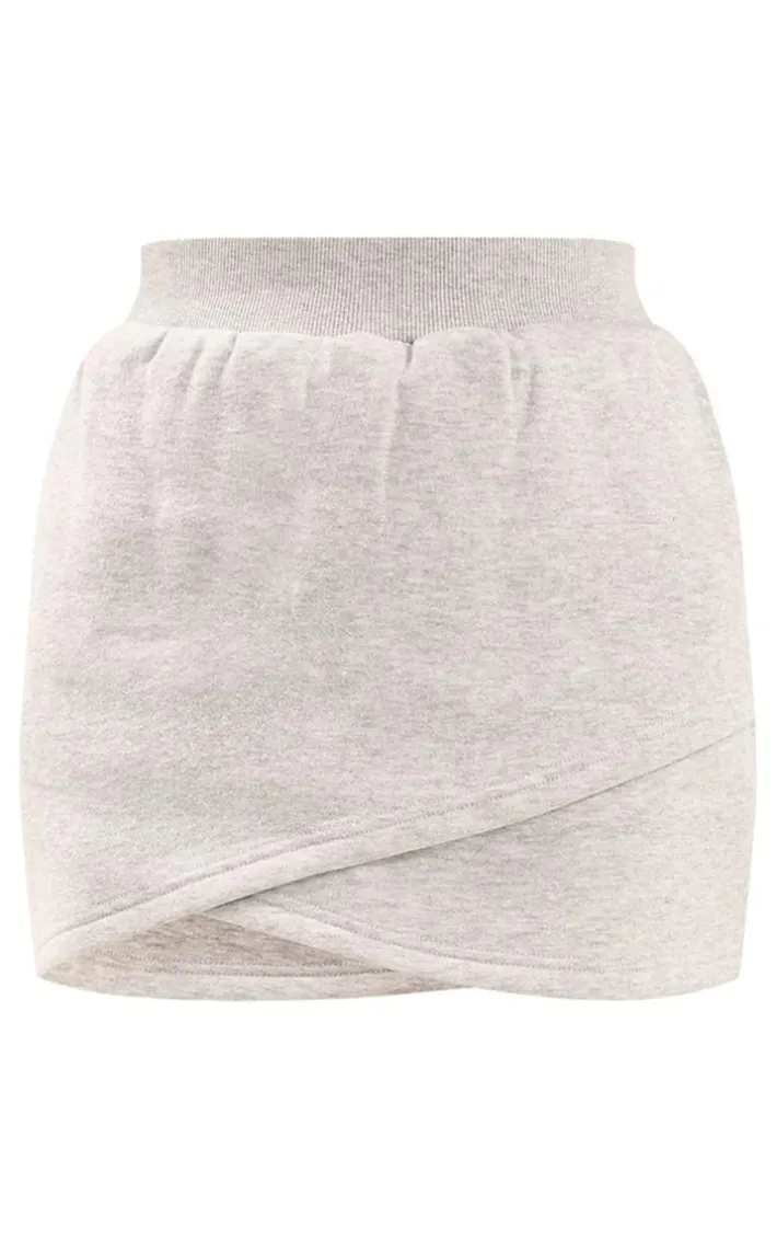Take your weekend wardrobe to a whole new level with this ash grey wrap sweat mini skirt and be sure to earn all the compliments. It features an ash grey sweat material with a wrap over design and a mini length, how could you not be in love? Super flattering and super easy to style, this mini skirt is just what you need. Team with the matching top and your fave heels for a chic finish.