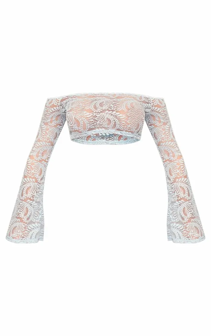 Turn heads for all the right reasons in this baby blue lace long sleeve bardot top. Brought to you in a dreamy baby blue hue lace material with a bardot neckline, long sleeves and a cropped fit, we are obsessed. Style this lace top with the matching skirt, heels and gold accessories for a look that is sure to bring all the drama to your weekend plans.