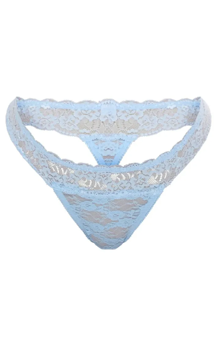 Add some dreamy hues into your lingerie collection with this baby blue lace thong. This thong is brought to you in a baby blue hue with lace detailing and a figure-flattering fit, what’s not to love? This thong is sure to have hearts racing. Style this with the matching bra and wear on it’s own or under your outfit of the day for a combo like no other.