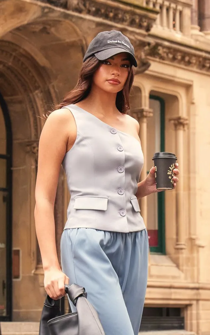 Add a pop of blue into your new season wardrobe with this baby blue tailored woven one shoulder waist coat. This waist coat is brought to you in a baby blue woven material with a one shoulder design and a tailored fit, how could you turn this down? Style this with tailored shorts, high heels and sunnies for a blogger-worthy combo.