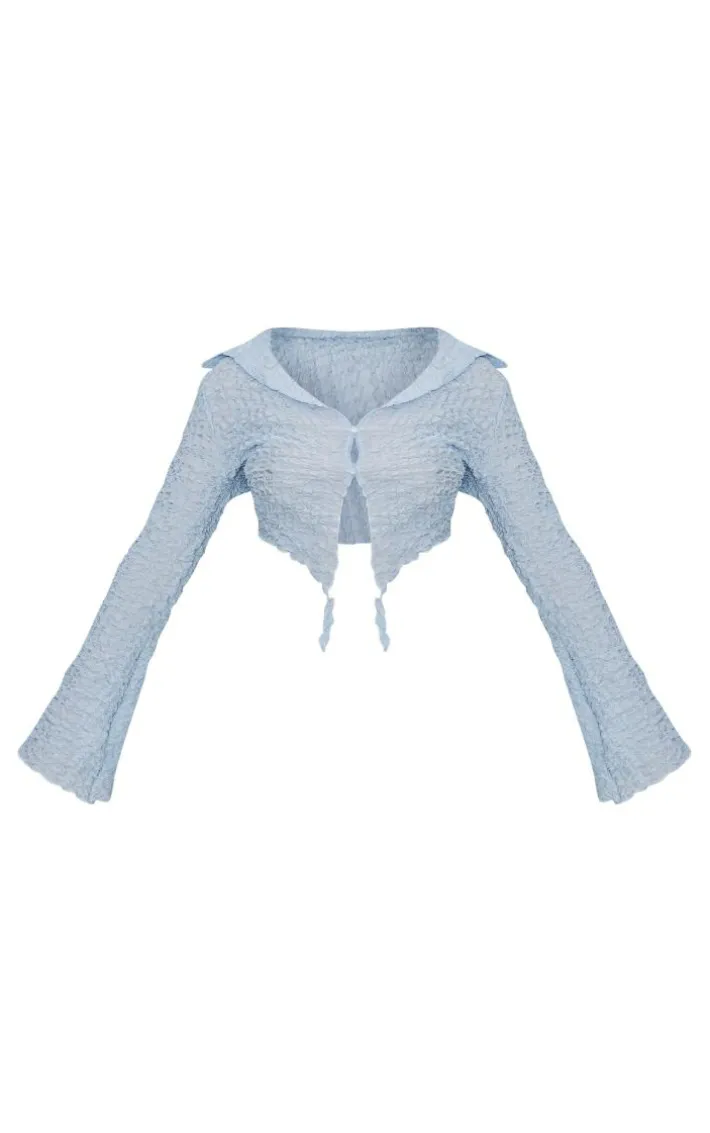 Hit refresh on your wardrobe this season with this baby blue textured dip hem flute sleeve shirt. Brought to you in a baby blue textured material with a dip hem and flute sleeves, this shirt is sure to impress. This shirt is a must-have for your wardrobe and will be the piece you keep reaching for time after time. Get ready for the weekend and pair with a satin skirt, clear heels and gold accessories. Its a yes from us.