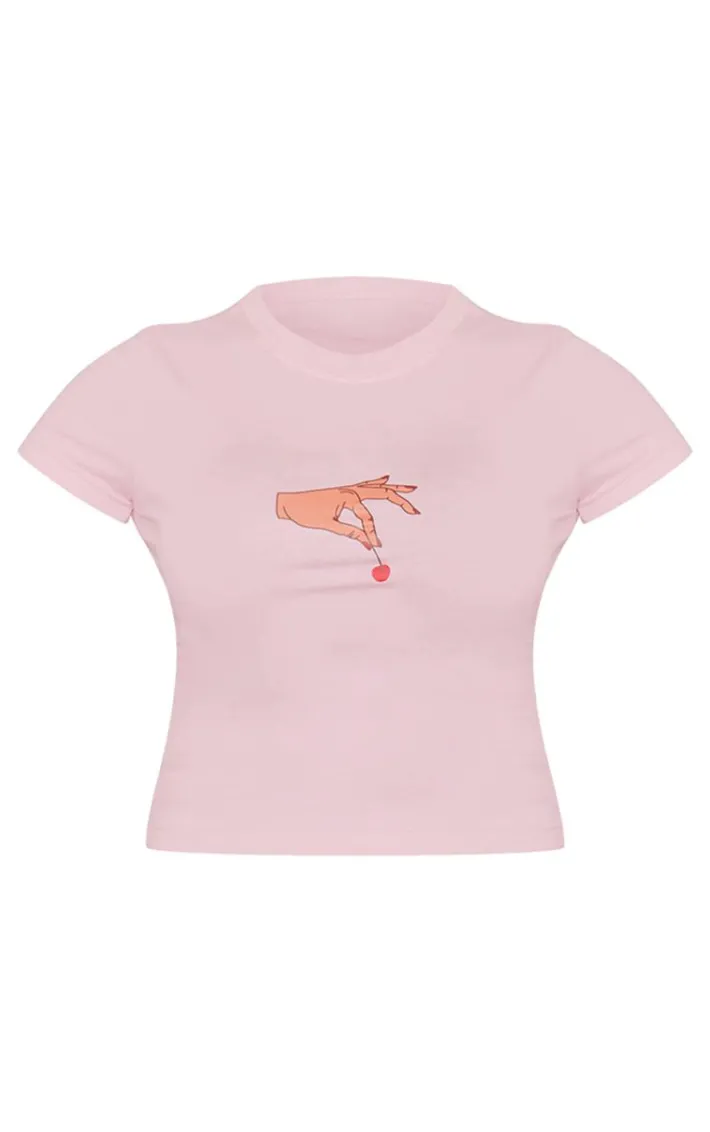 Set major trends this season with this baby pink cherry print fitted short sleeve t shirt. Brought to you in a baby pink material with a cherry print design, what more could you want ? Its fitted design and short sleeve fit will have you feeling effortlessly chic all season long. Team with your fave accessories and some statement cowboy boots for a fool proof finish we are obsessing over.