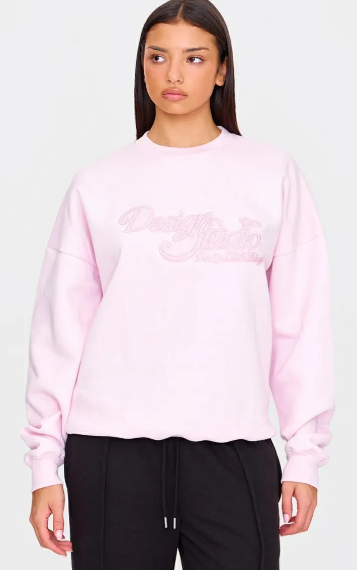 Make this baby pink design studio embroidered Sweatshirt your new off-duty go-to. Made from a baby pink material with a ‘Design Studio’ embroidered design and a comfy fit, what’s not to love? Pair this baby pink Sweatshirt with comfy sweatpants and sneakers for a look we just can’t get enough of.