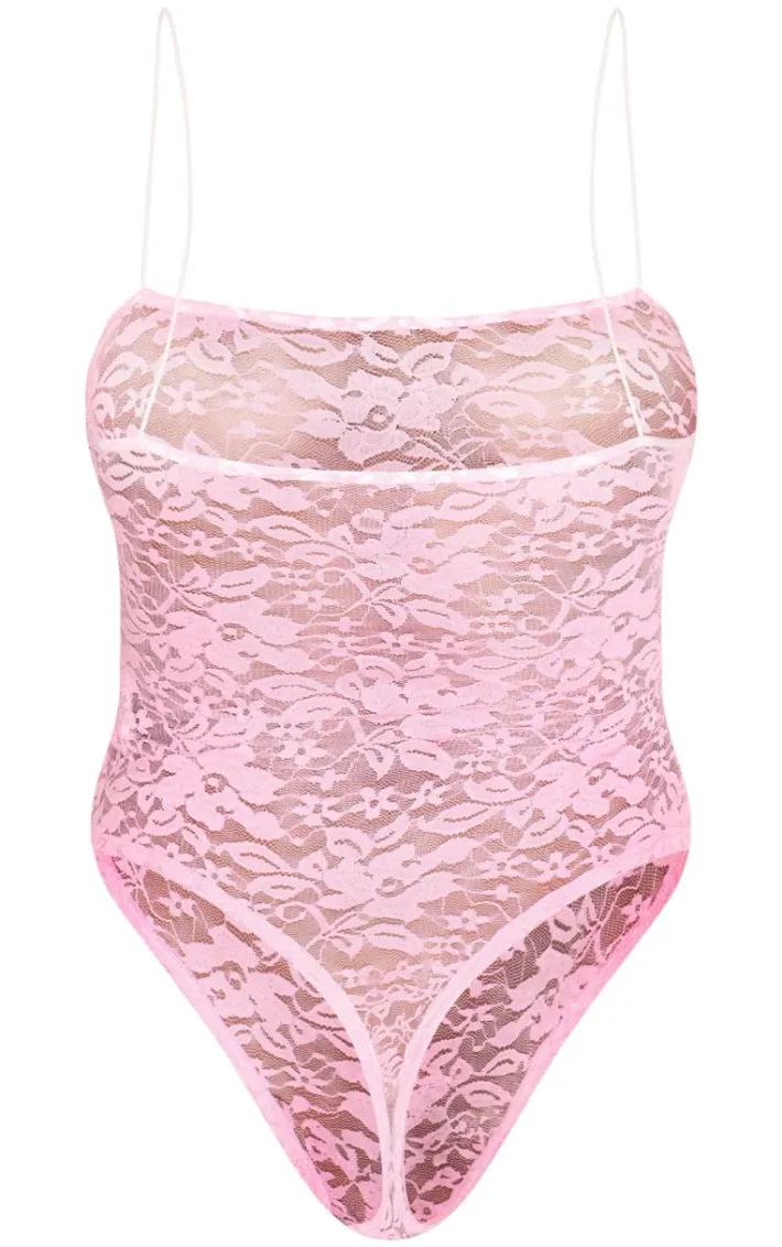 Bring all the luxe lace feels to your new season wardrobe with this baby pink lace spaghetti strap bodysuit. Made from a baby pink hue lace material with spaghetti straps and a flattering fit, how can you resist? Style this lace bodysuit with long shorts, accessories and cowboy boots for a look that will really make a statement this weekend.