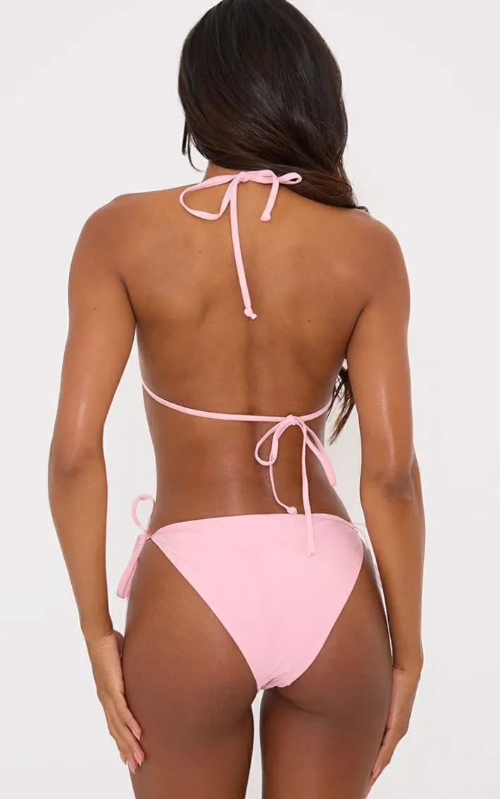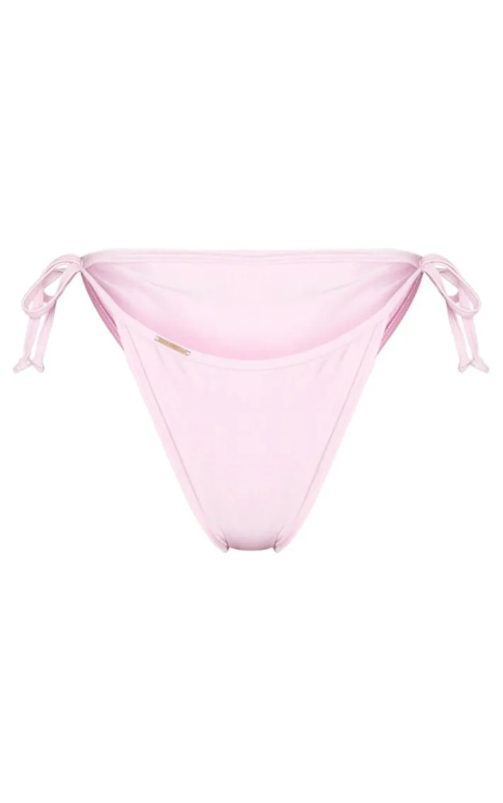 Work some pastels into your beachwear collection with these bottoms. Featuring a baby pink material with tie side fastenings and a flattering fit. Style them with the matching bikini bottoms and a mesh cover-up to have all eyes on you.