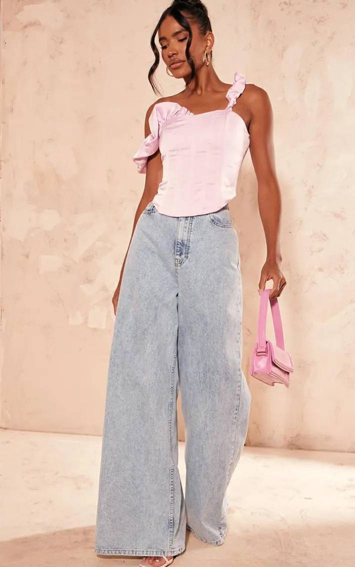 We’re totally in love with this baby pink premium satin rose applique corset top for your weekend plans. It is made from a baby pink satin material with a rose applique design and a corset style, how could you not be obsessed? This corset top gives you endless styling potential and is bound to give your look that extra chic touch. Style seamlessly with your blue denim jeans, clear heels and gold accessories for a seriously luxe finish.