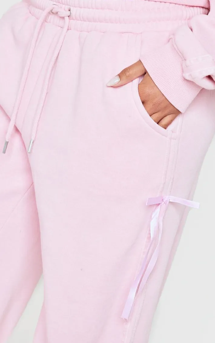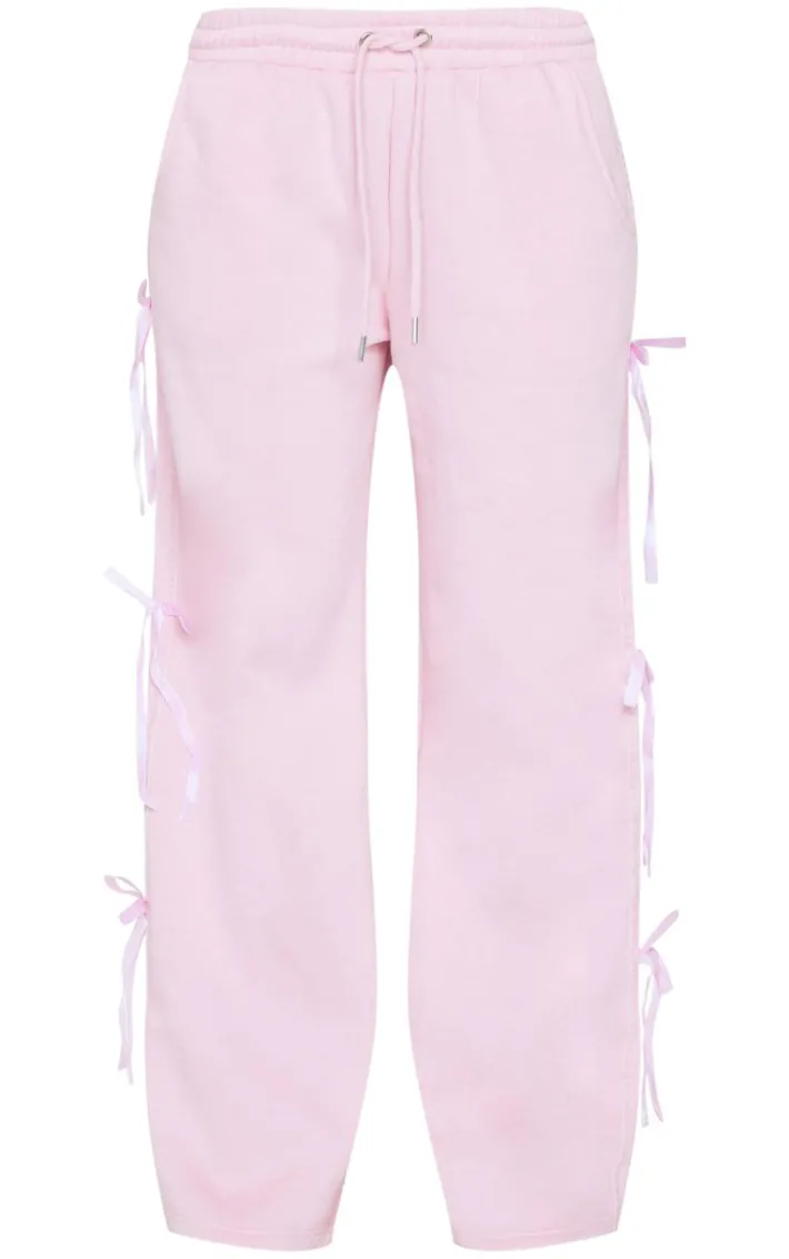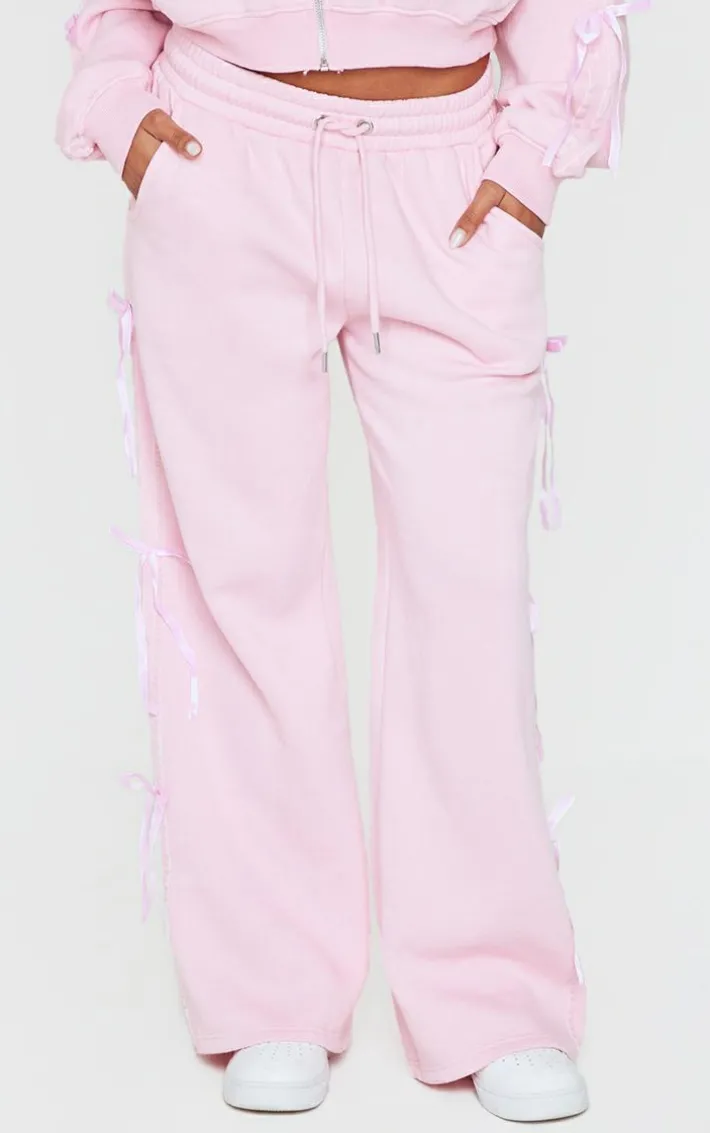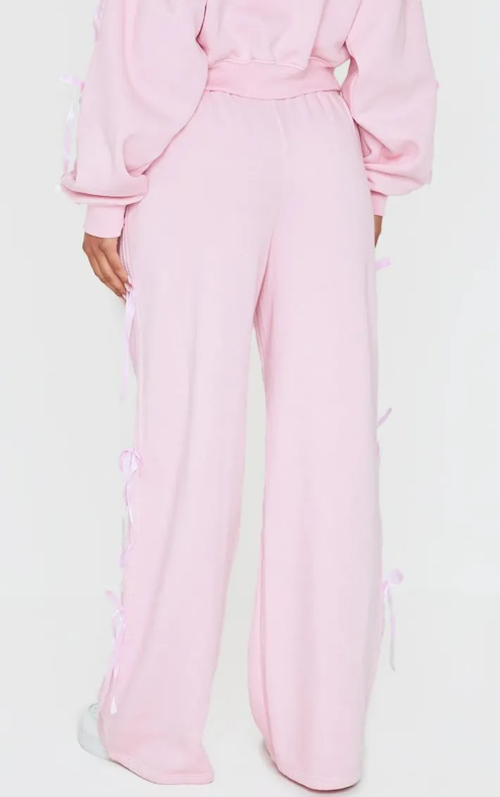Deciding what to wear on those off duty days just got easier with these baby pink velvet bow wide leg sweatpants. Brought to you in a baby pink hue velvet material with a bow detail and wide leg fit, these sweatpants are a must have. Team with the matching zip through hoodie, fresh kicks and simple accessories to elevate the look.