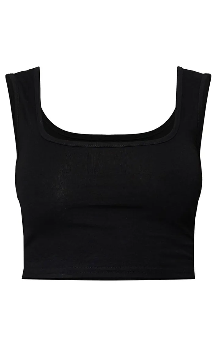 We are loving this top for your new season wardrobe. Featuring a Black Cotton Blend fabric with a square neckline and a cropped fit, what’s not to love? Style with comfy bottoms and kicks for a chilled off-duty look.