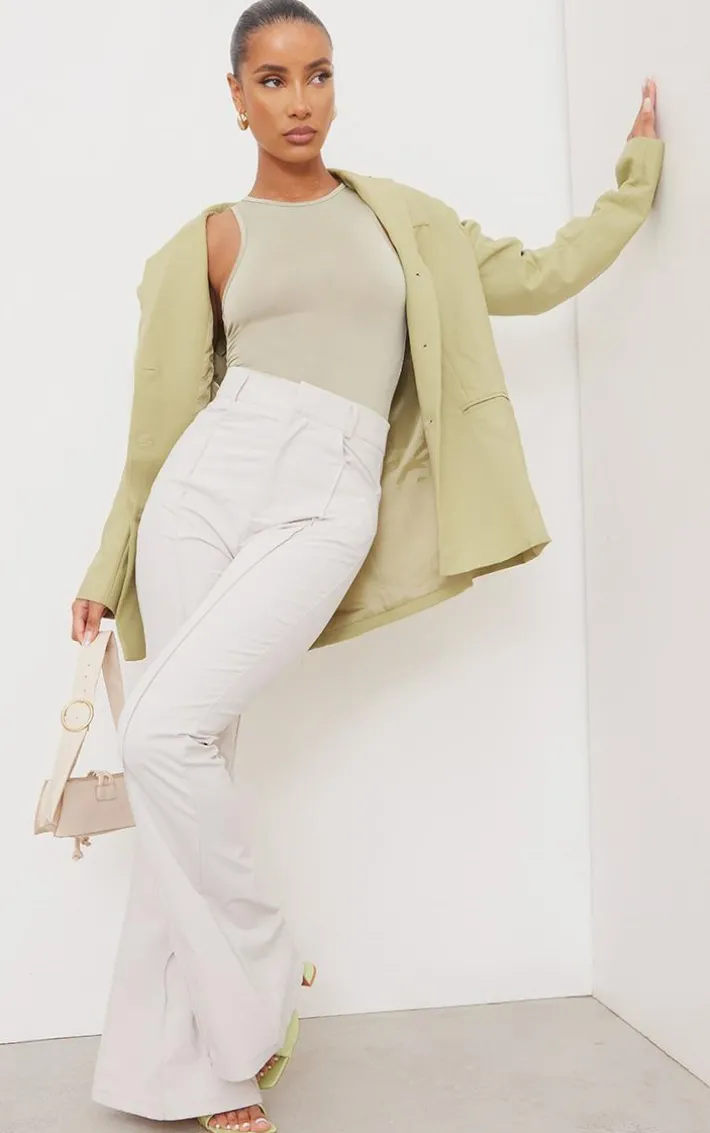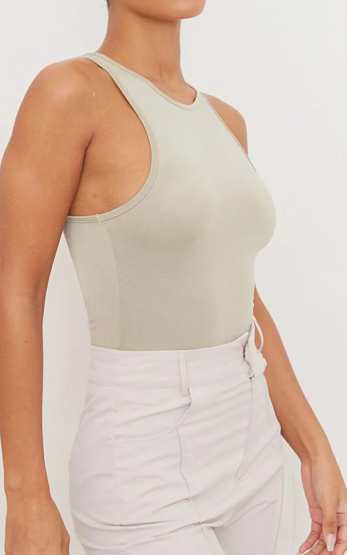 This bodysuit is sure to be your new go-to for any occasion. Featuring a sage green slinky material with a racer neck, we are obsessed. Wear in the PM with a blazer and wide leg bottoms for a chic update.