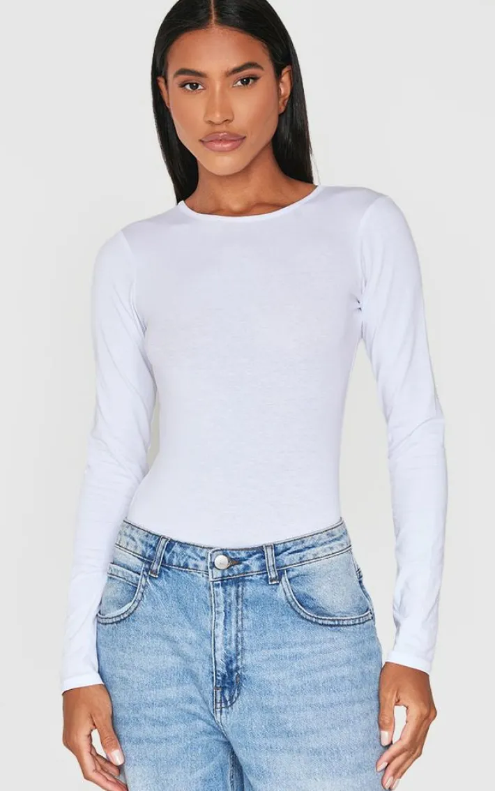 Add some clean hues to your off-duty look with this basic white cotton blend crew neck bodysuit and never have another what-to-wear dilemma again. Whether you’re heading out for weekend plansor want to switch up your everyday look, this bodysuit is a yes from us. With a white cotton blend fabric with a crew neckline, we’re obsessed. Team this bodysuit with casual bottoms and chunky kicks for a simple yet chic combo.