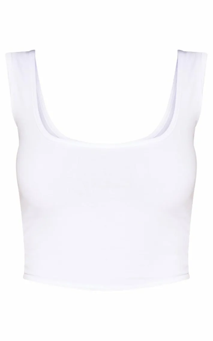 This basic crop top is everything but basic for your off-duty wardrobe girl. Featuring a white material with a square neckline and a cropped fit. Style this crop top with some bright sweatpants and barely-there heels for a look we are loving.