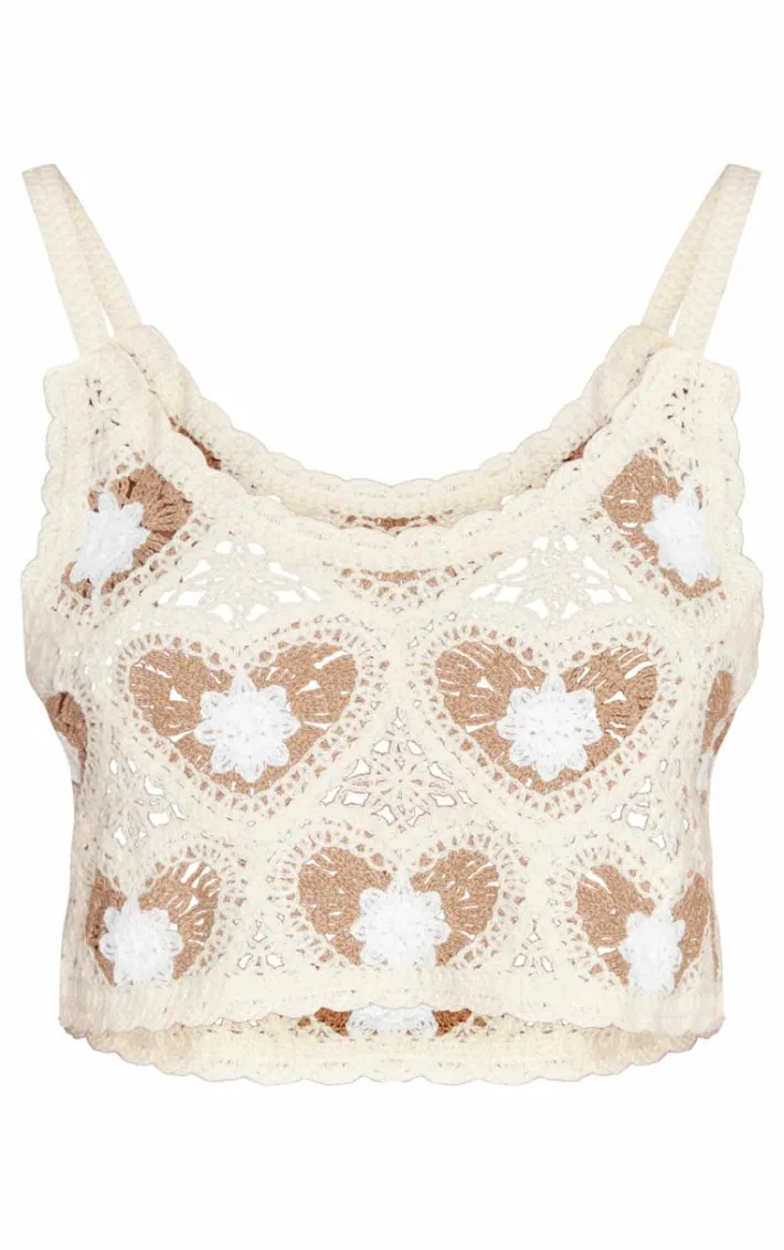 We are all about the crochet feels this season and this beige heart crochet knit floaty top is a must-have for your wardrobe. Brought to you in a beige hue crochet knit material with a heart design and a floaty style, what’s not to love? Team this crochet top with a mini skirt and sneakers for an effortless everyday look like no other.
