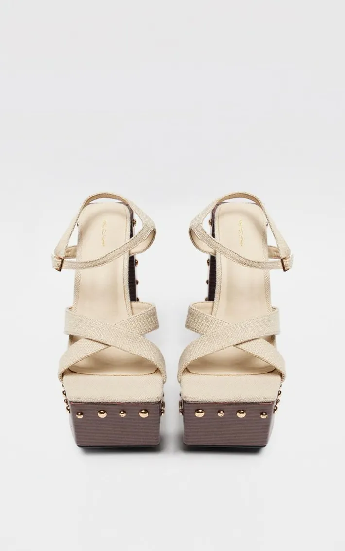 Say hello to these beige linen look square toe studded trim platform sandals. Brought to you in a beige linen look material with a square toe design and a studded trim, these platform sandals are at the top of our wish list. Style with your fave fit to earn all the style points this season. It’s official, we’re obsessed.