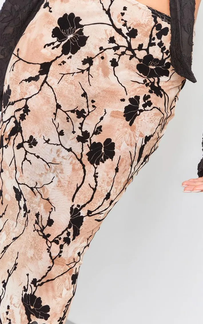 Add some dreamy prints to your new season wardrobe with this beige ombre print devore mesh maxi skirt, it is perfect for your weekend plans and beyond. Brought to you in a beige ombre print devore mesh material with a maxi length and a figure-worshipping fit, you won’t be able to resist this skirt. Pair it with a crop top, clear heels and your fave accessories for a combo we’re crushing on.