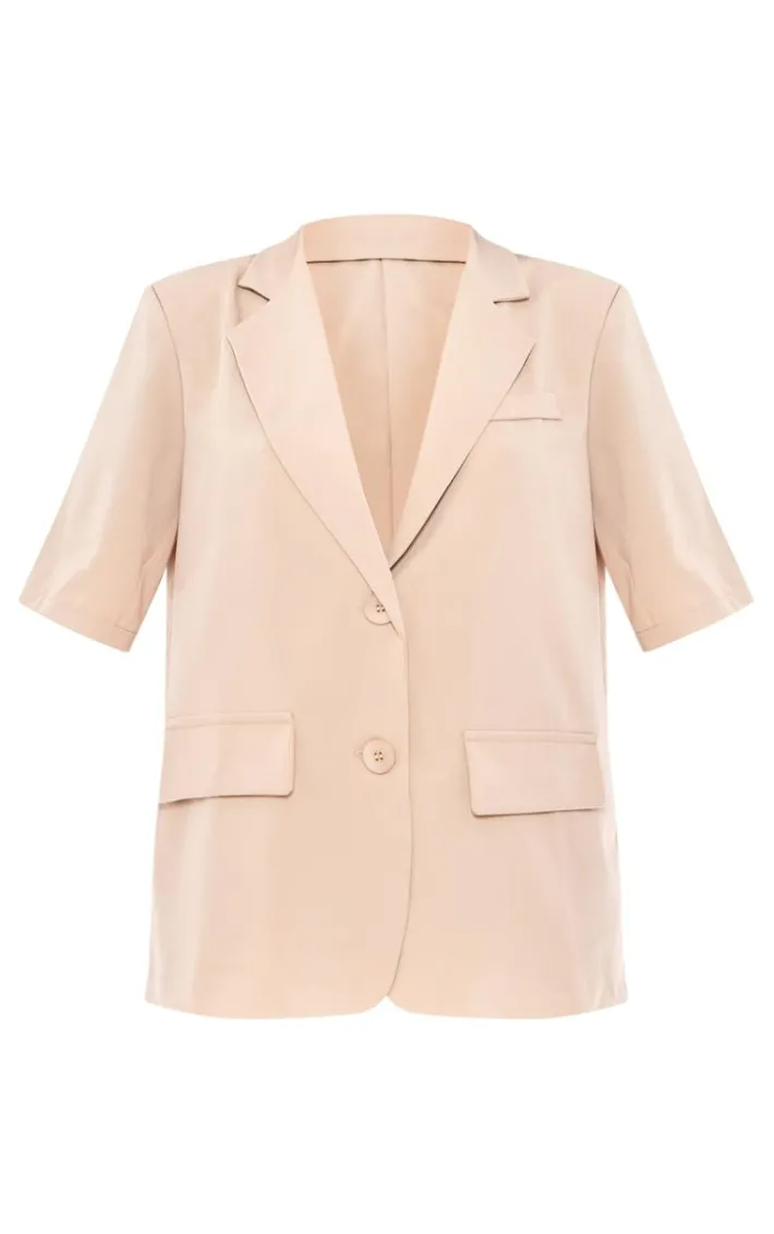 Switch up your new season style game with this beige short sleeve oversized blazer, we’re seriously obsessed. This blazer features a beige hue material with short sleeves and an oversized fit, what more could you want? Style this blazer with some wide leg pants, sneakers and a cap for a fresh finish.