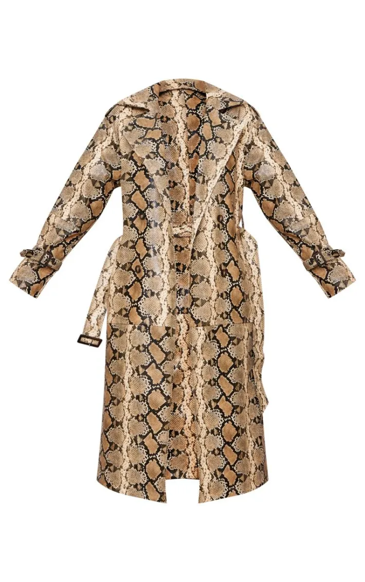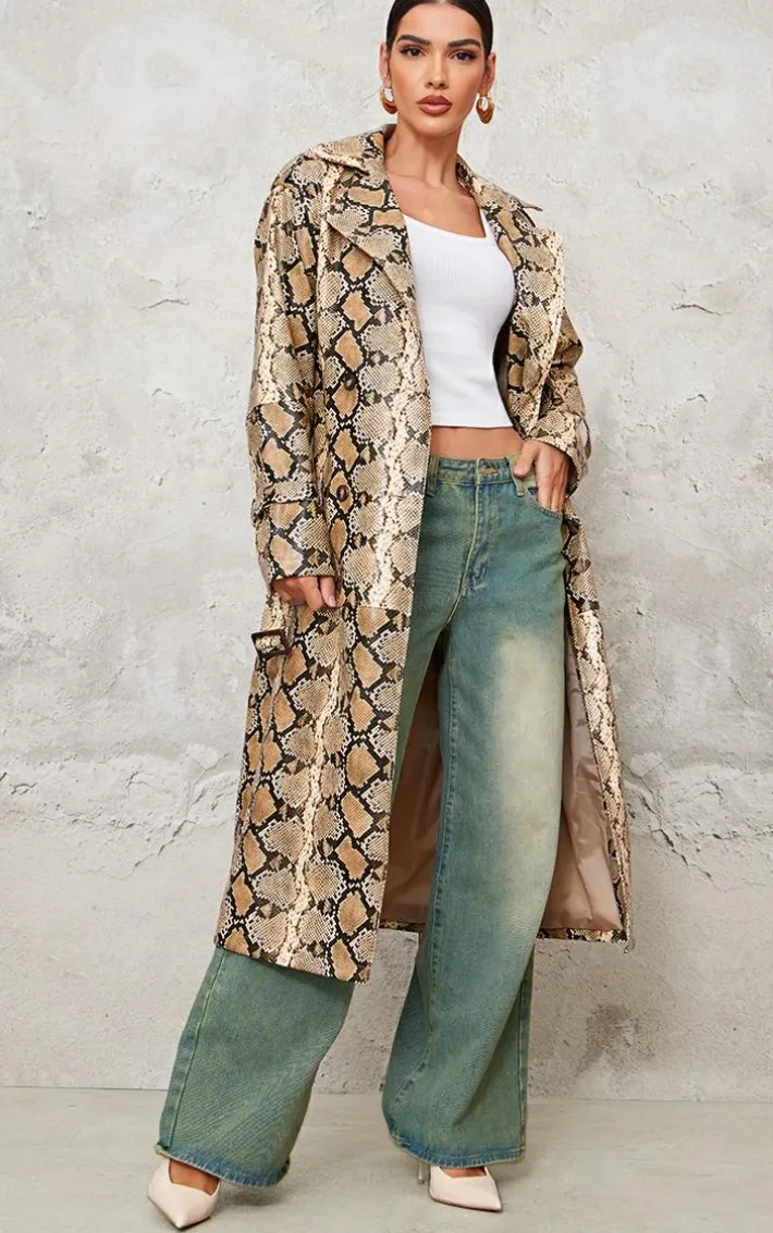 Inject some of this seasons must have print into your wardrobe with this beige snake faux leather coat. Brought to you in a beige hue faux leather material with a snake print design and maxi length, this coat is a must have. How can you resist? Style with a white tee, blue jeans, and your fave heels for a statement finish that won’t go unnoticed. It’s a yes from us.