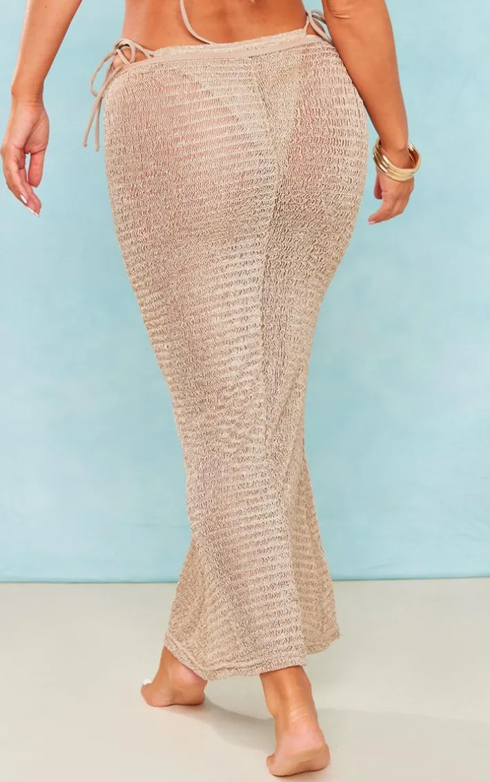 Channel the perfect poolside ‘fit with this beige textured fishtail beach maxi skirt. Brought to you in a beige hue textured material with a fishtail design and a flattering maxi fit, what more could you ask for? Style this beach skirt seamlessly with the matching bikini, gold accessories and oversized shades for a look that is sure to have all eyes on you on your next vacay.