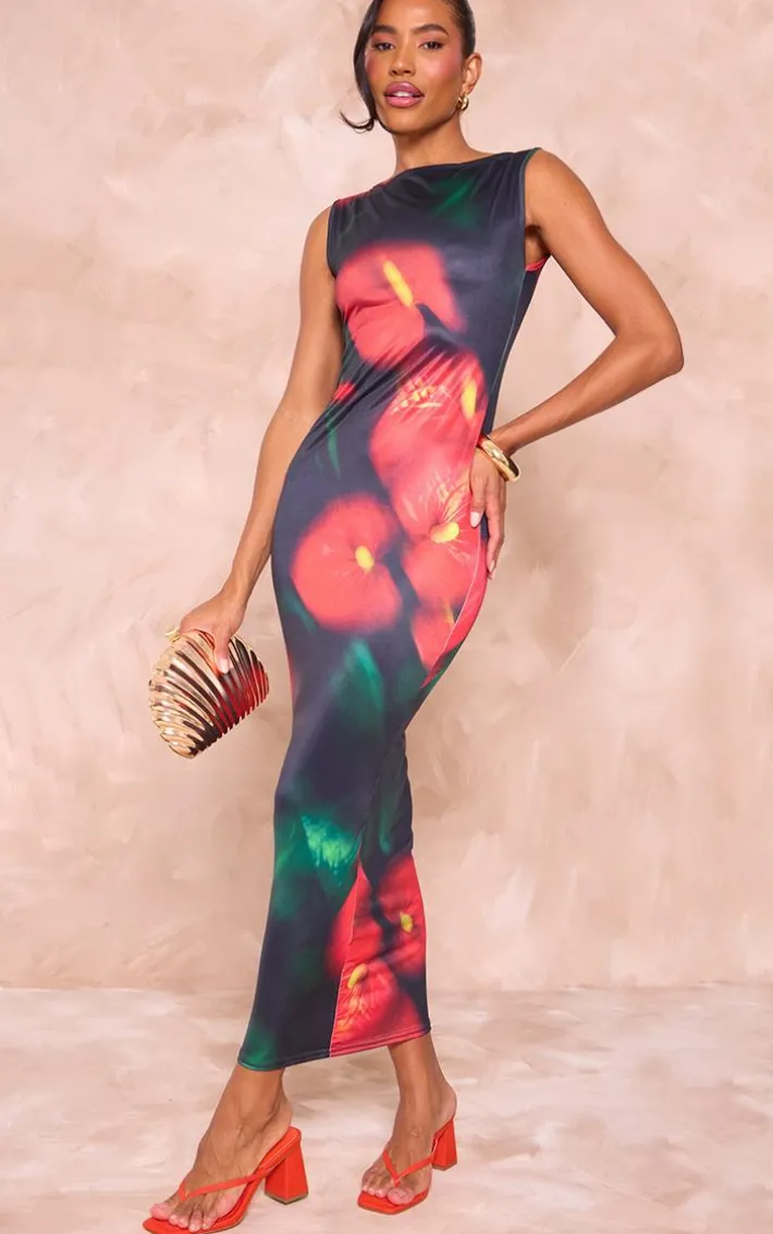 Make a serious style statement in this black abstract soft touch sleeveless maxi dress. Brought to you in a black soft touch material with an abstract print and a sleeveless design, how can you go wrong? Seriously chic and in a figure-flattering maxi fit, you are guaranteed to steal all the stares in this black dress. Just add heels and accessories to complete the look.