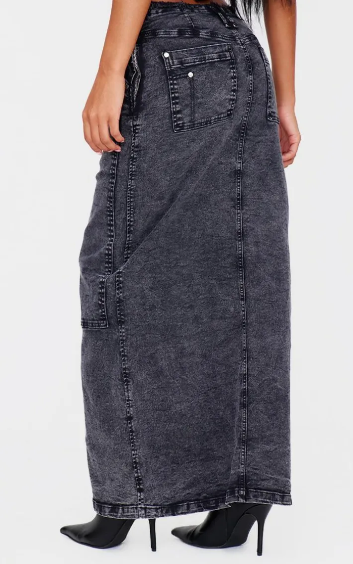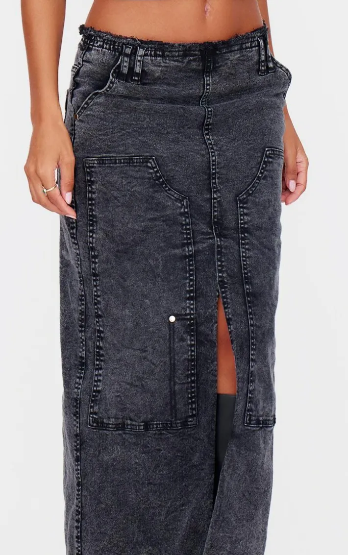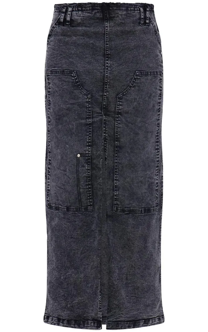Take your everyday look to the next level with this black acid wash twill raw hem maxi skirt perfect for your everyday styling and beyond. Brought to you in a black acid wash twill material with a raw hem and a maxi length, we simply can’tget enough. With It’s versatile style this maxi skirt is sure to be your new go-to. Style with a red cropped jacket, box-fresh kicks and accessories for a look that we can’tget enough of.