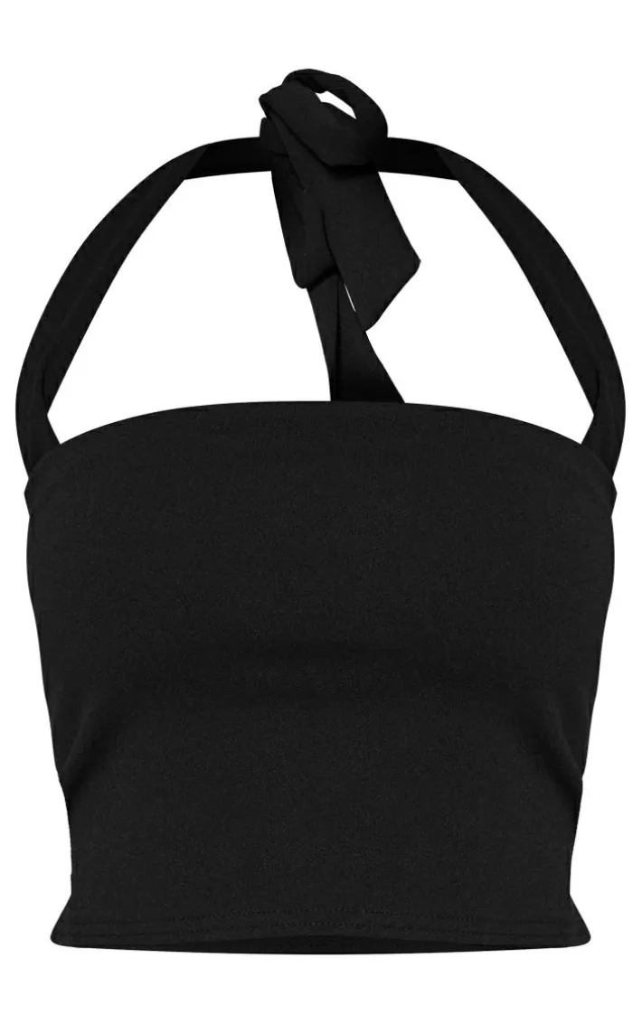 Get ready for your next nightwith this unreal black asymmetric halterneck strap detail bandeau. With a black material, an asymmetric halterneck strap and a figure-flattering fit, this bandeau is here to solve all your styling dilemmas. Just add the matching skirt, heels and a shoulder bag for a look that will get you noticed.