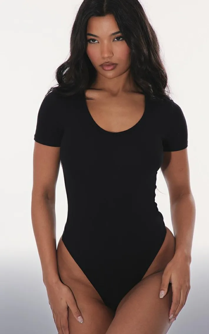 Upgrade your everyday wardrobe with this basic black cotton blend V neck short sleeve bodysuit. A bodysuit is Basic this season and we are loving this versatile style. Made from a Black Cotton Blend material with V neck design and short sleeves, we are obsessed. Team this black bodysuit with comfy bottoms and chunk kicks for a blogger-worthy vibe.