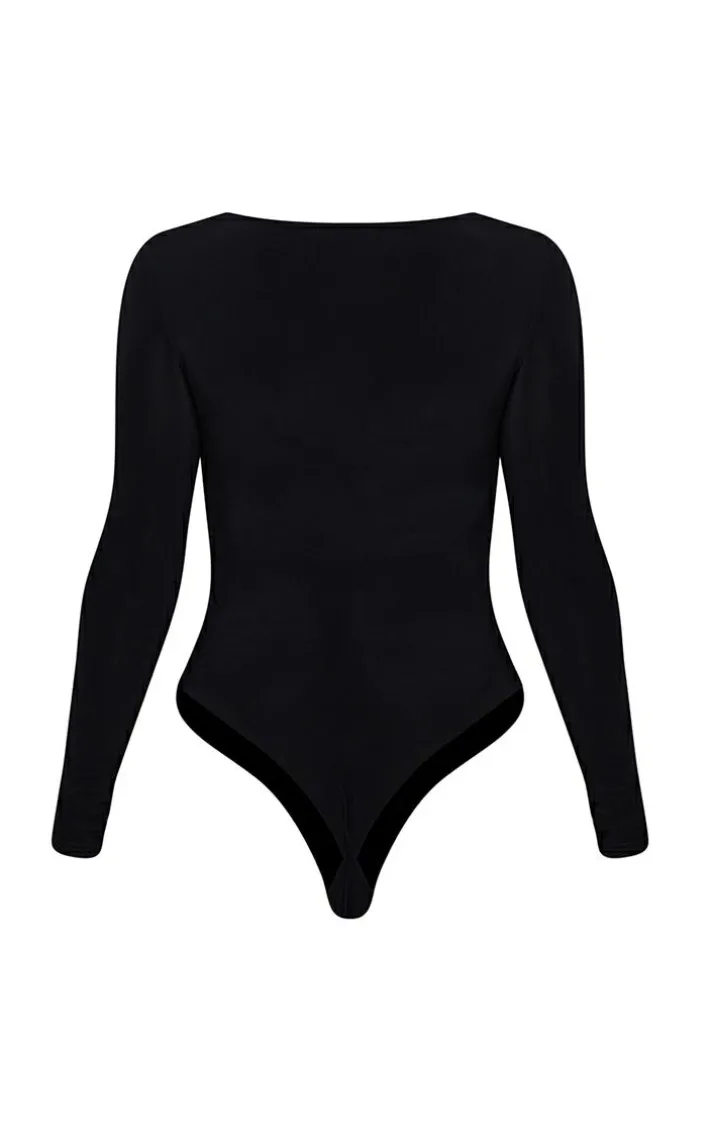 This simple but chic black basic slinky long sleeve bodysuit is perfect for endless styling for the nailing all the new season trends. Featuring a black slinky material with long sleeves and a flattering fit, what’s not to love? Whatever your plans are this season, this bodysuit is the ultimate essential that your wardrobe needs. Team this with combat bottoms and chunky boots for a combo we’re obsessed with.