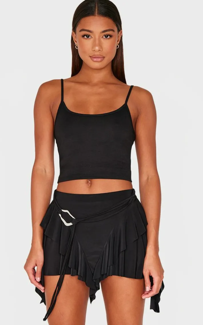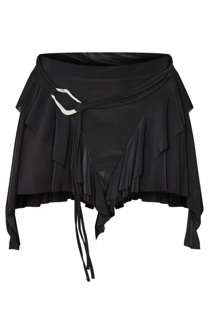 This black belt detail slinky jersey ruffle mini skirt is here to banish any of your what to wear dilemmas. Brought to you in a black jersey material with a belt and ruffle detail, we can’t get enough. From start to finish this mini skirt will have you looking totally on-trend. For a next-level look simply style with a crop top and your go-to heels. It’s a yes from us doll.