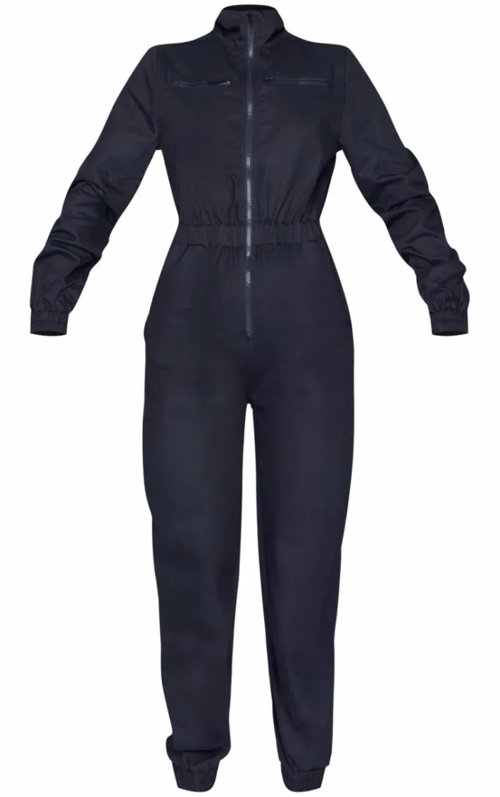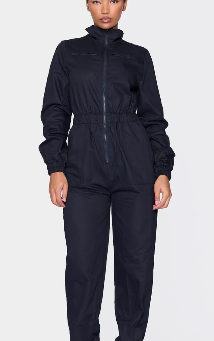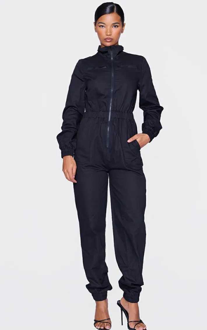 Have all eyes on you in this statement jumpsuit. Featuring a black material with a contrasting stitch and elasticated cuffs. Style this with strappy heels and neon accessories to complete the look.
