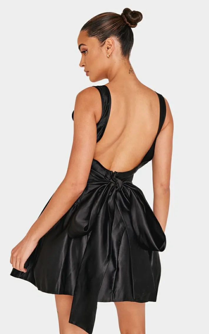 This black bow back detail skater dress will add a touch of chic to any wardrobe this season. Brought to you in a must have black shade, with a statement bow back design and flattering skater style, what’s not to love? Style with a pair of heels and minimal accessories to complete the look.