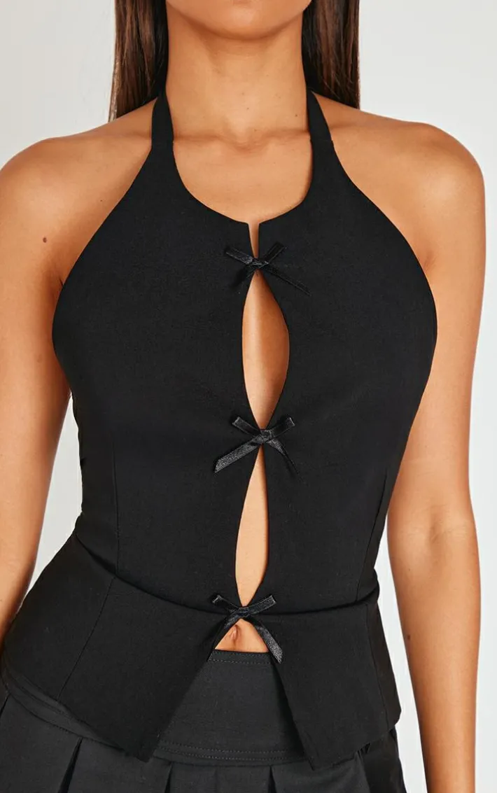 The new you starts here, opt for this black bow detail long top for your weekend plans. Made from a black hue material with a bow detail and tie front fastening, this long top is a yes from us. Pair with a pleated mini skirt, knee high boots and simple accessories for an elevated finish we’re all loving.