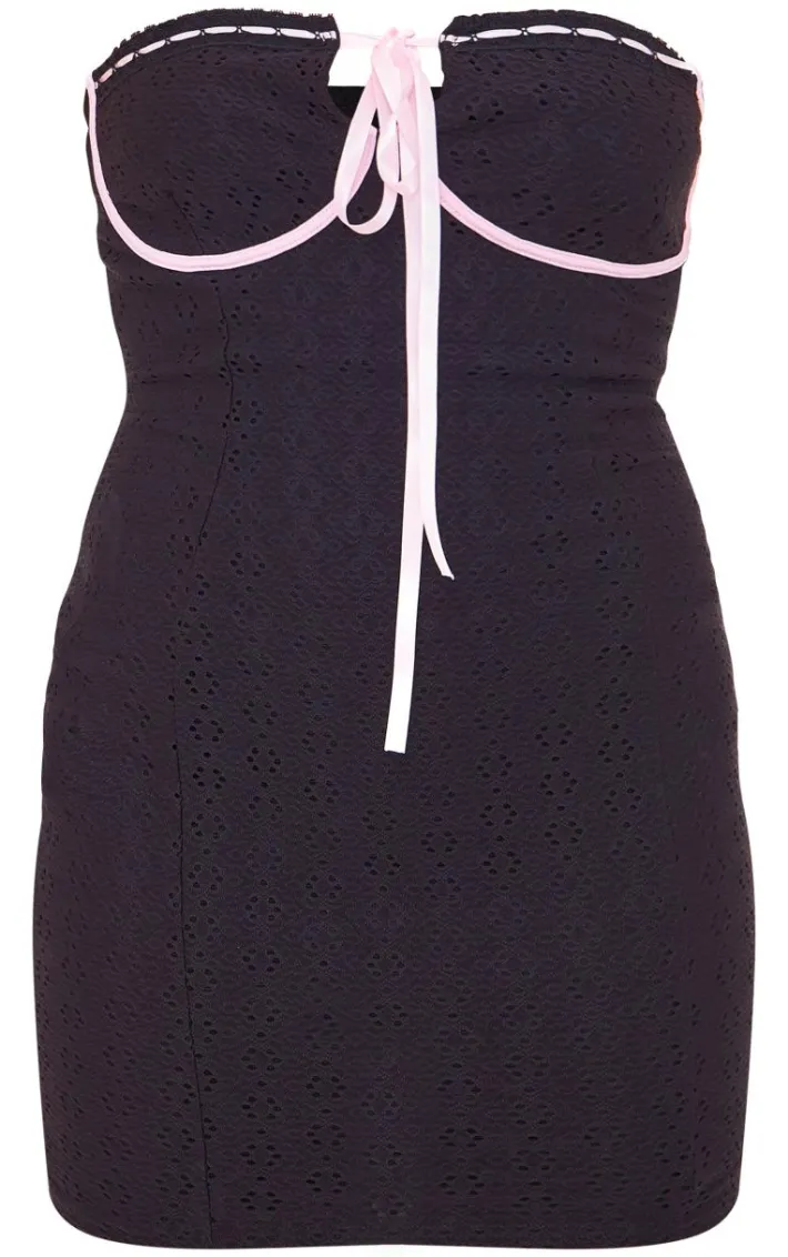 This black broderie contrast ribbon bandeau bodycon dress is here to solve all your styling dilemmas. With a black broderie material, contrasting ribbon detailing and a bandeau style, you’ll be reaching for this bodycon dress for all your weekend plans. Just add your fave heels and simple accessories for a look we just can’t get enough of.