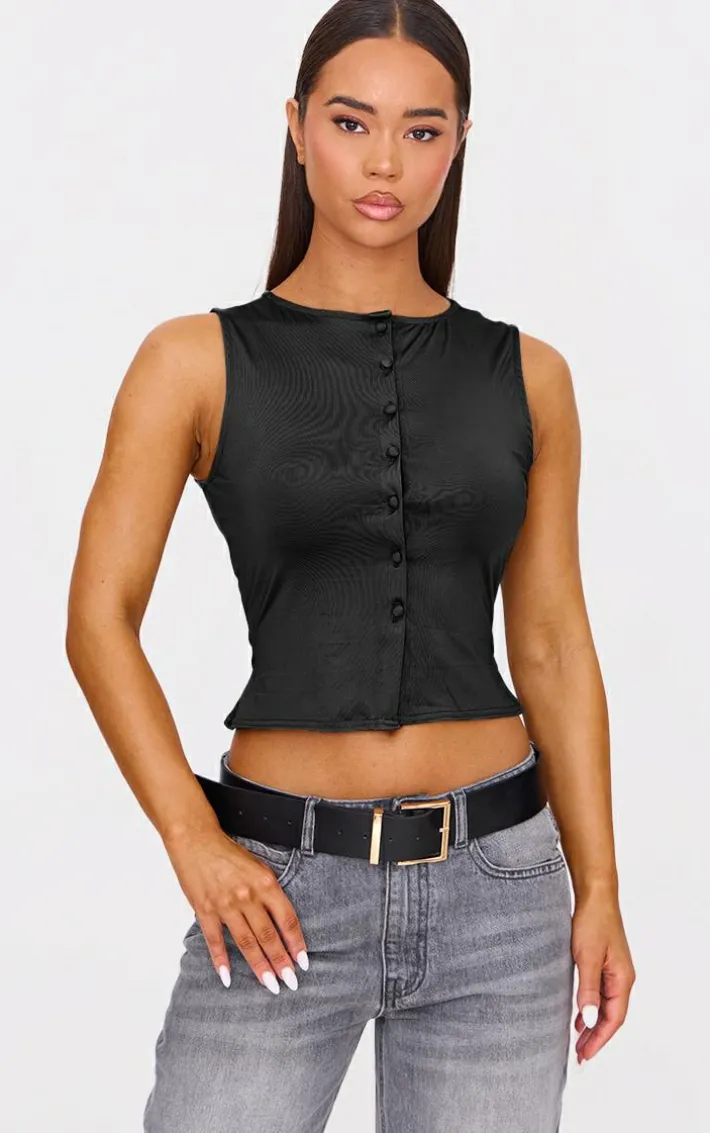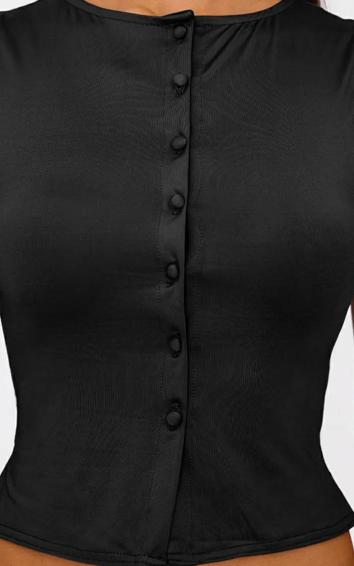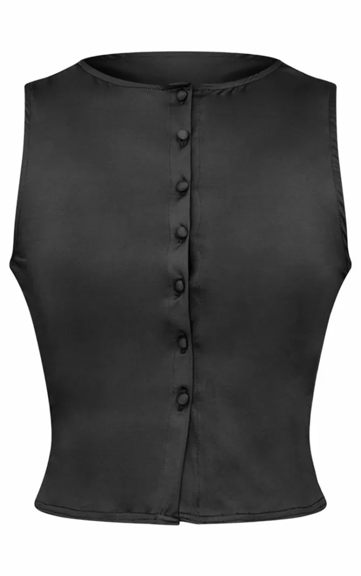 Elevate your basics collection with this black button up long sleeveless top. Brought to you in a chic black shade, with a luxe button up design and flattering sleeveless feature, how can you say no? Team with a pair of wide leg jeans, flats and a shoulder bag for a look like no other.