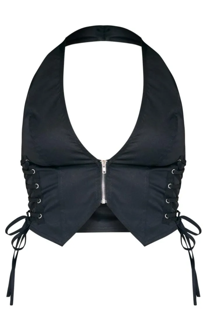 Look all kinds of glam in this black cargo lace up side zip up crop top. This top is made from a black cargo material with a lace up detail, you will be feeling all kinds of chic this season doll. With a side zip, what more could you want? Team with some faux leather pants and your fave sunglasses to complete the look we are obsessing over.