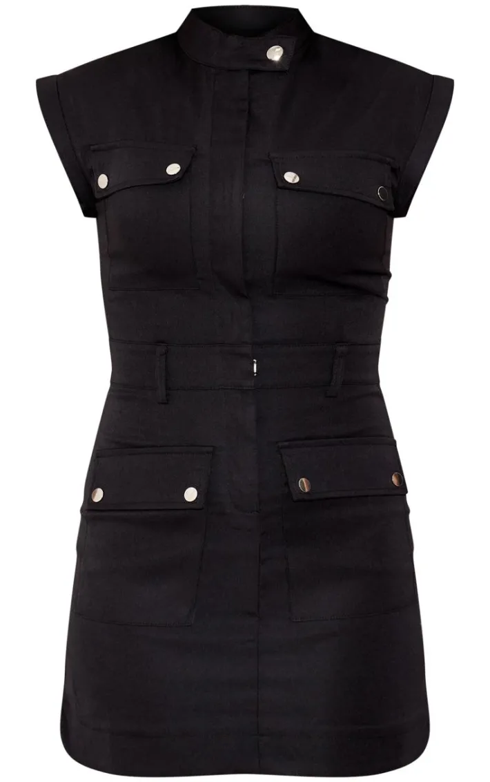 When the weekend calls so does this black cargo sleevless pocket detail bodycon mini dress. Brought to you in a black cargo material with a sleeveless design and pocket detail, this bodycon mini dress is a must-have. Style with flatform sandals and gold accessories for a grunge look we’re obsessing over.