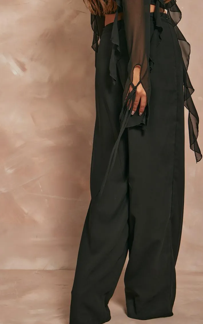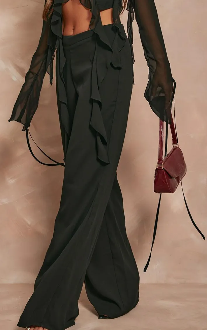Enter the weekend in style with these black chiffon mid rise wide leg pants. Brought to you in a black chiffon material with a mid rise design and a wide leg fit, how can you resist? Style these chiffon pants with the matching top, heels and a mini bag for an effortlessly chic look they won’t be able to take their eyes off.