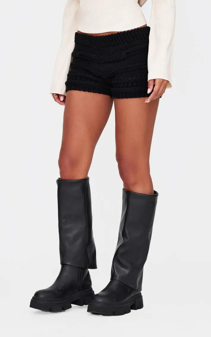 You won’t have to sacrifice comfort for style with these black chunky raised contrast knit mini shorts. Brought to you in a black chunky knit material with a contrasting design and a mini fit, how can you say no? Style these knit shorts with a top, boots and gold accessories for a look you will be reaching for again and again.