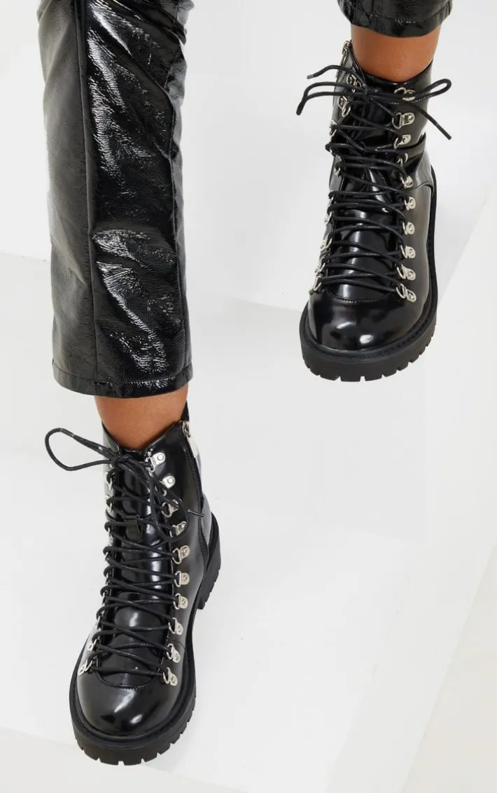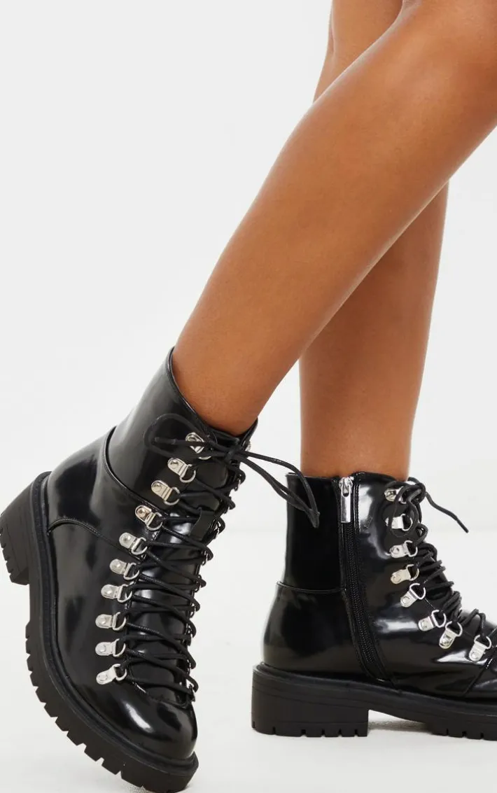 We are obsessed with chunky boots right now and this design is high on our hitlist. Featuring a black patent material with a cleated sole and eyelet detailing, wear these boots with your everyday attire for blogger worthy attire.
