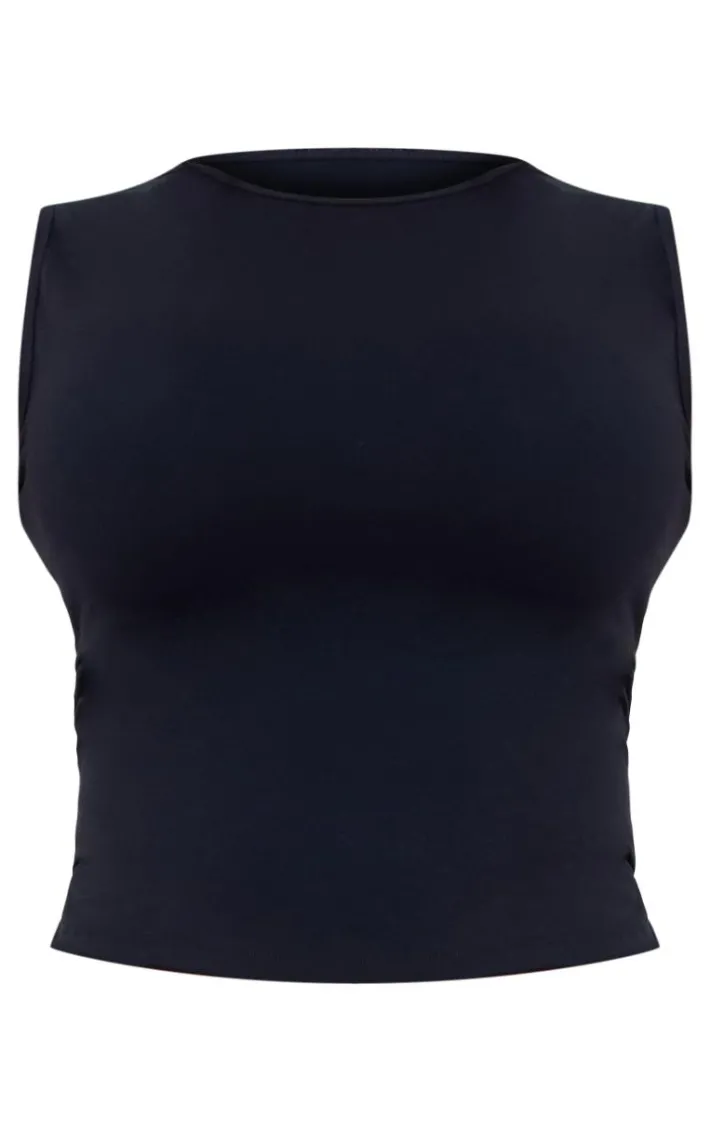 Take any look to new heights with this black contour crew neck fitted Vest top. Brought to you in a black contour material with a crew neck design, what more could you want? This Vest top has a crew neck and a fitted design, perfect for those on the go days and beyond. Team this Vest with some wide leg pants and a pair of your highest heels to finish off the look.