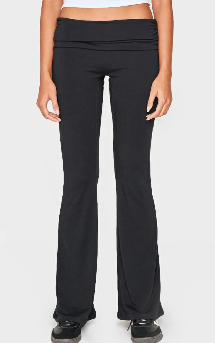For those off-duty days, these black contour jersey foldover waist ruched side flared pants are an essential. Brought to you in a black contour jersey material with a foldover waist and a ruched design, you are sure to be obsessed with these flared pants. Team with a basic tee and a pair of sneakers for a look we are loving.