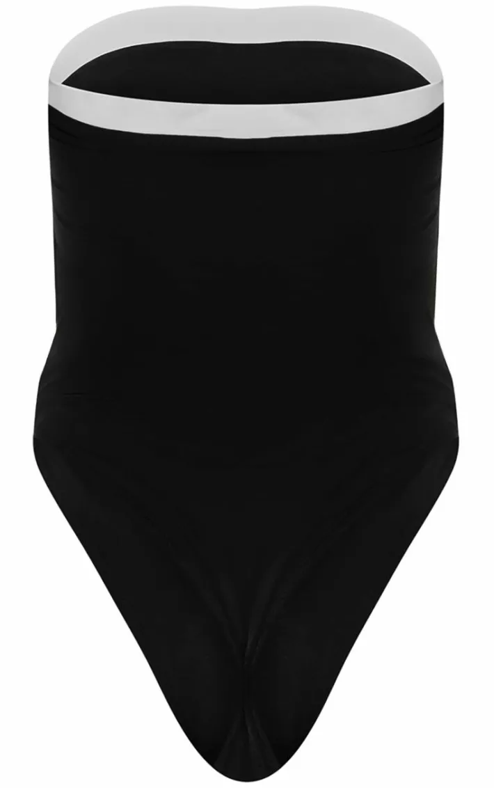 Say hello to your new season staple with this black contrast binding bandeau swimsuit. Made from a black material with a contrast binding design and a bandeau fit, what more could you want? This unreal swimsuit is here to banish any of your what to wear dilemmas. Team with your fave accessories and your poolside essentials for a look that have you being the topic of everyone’s conversation.