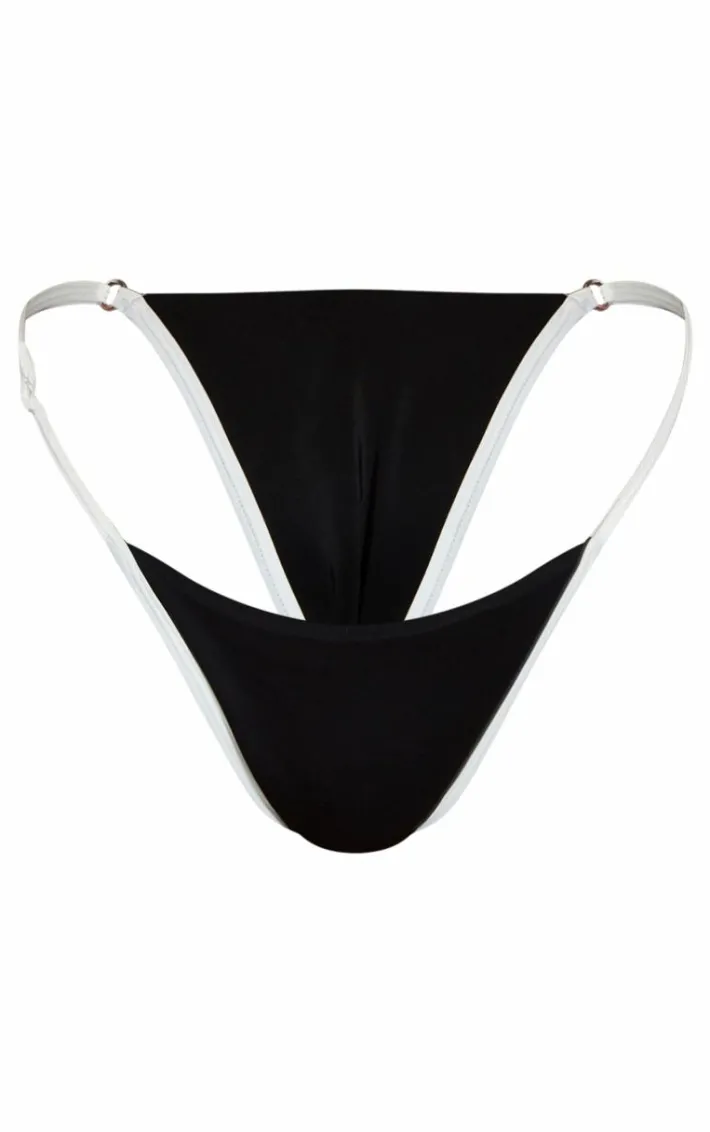 Inject a touch of chic into your vacay wardrobe with these black contrast binding tanga bikini bottoms. Brought to you in a black hue material with a contrast binding design and a tanga style, how can you resist? Pair these bikini bottoms with the matching bikini top and oversized sunglasses for a poolside look that is sure to turn heads.