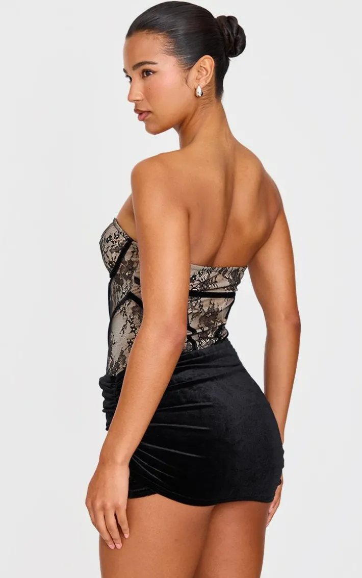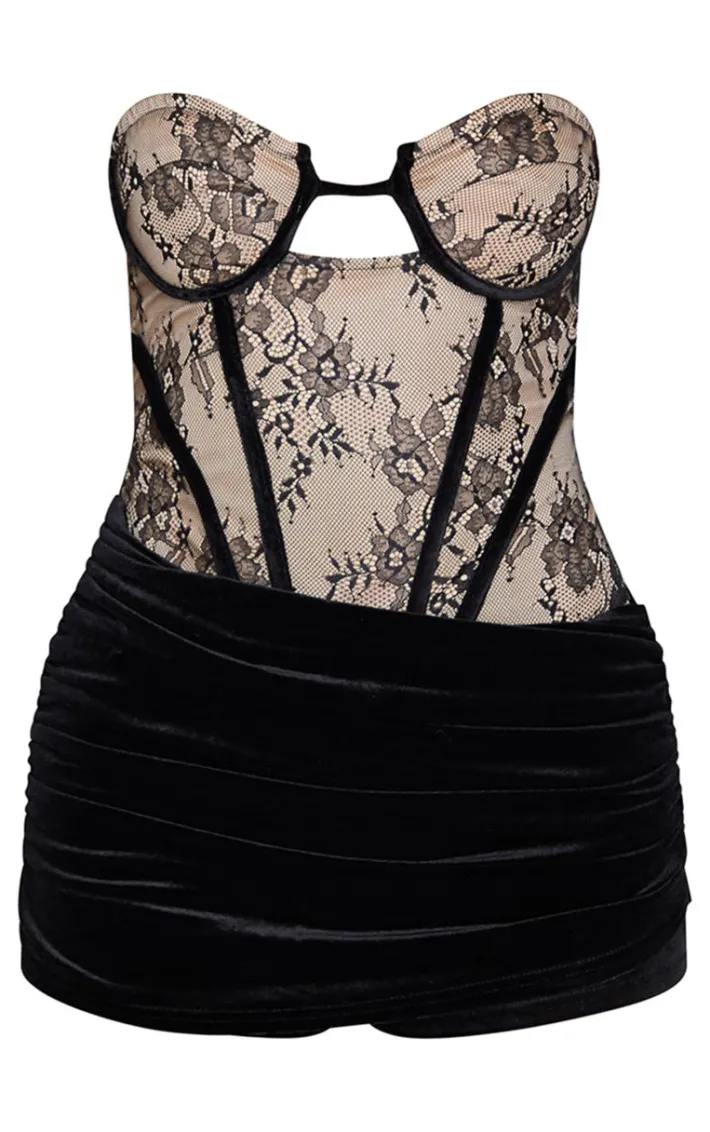 Own the night in this black contrast lace velvet wrap detail skort romper. Brought to you in a black hue velvet material with a contrast lace detail and wrap skort design, this romper is a must have. Team with high heels and simple accessories for a chic finish everyone will be asking about.