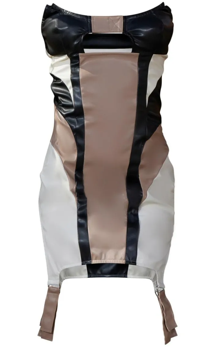 When the weekend calls for a little drama this black contrast panel faux leather bodycon dress will have you at the center of attention. It is made using ablack faux leather material with panel detailing and a figure-hugging fit, what more could you want ? Style this effortlessly with some statement boots and oversized sunglasses to elevate the look further.