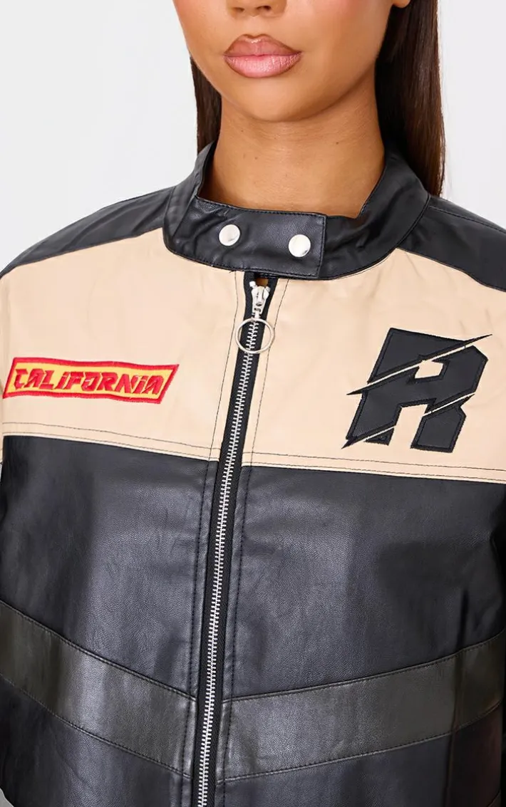 Add some effortlessly chic pieces to your weekend look with this black contrast panel oversized faux leather motocross jacket. Its black faux leather material is sure to add a little edge to your look whilst its contrast panel gives it that fresh touch. This is definitely a yes from us for your new season wardrobe. Team with a pair of jeans and simple accessories for a look that won’t go unnoticed.