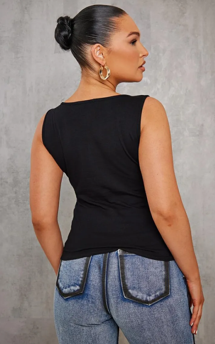 This black cotton boatneck sleeves top is about to become your new season style staple. Made from ablack hue cotton material with a sleeveless design and a boatneck style that we just can’t get enough of, what’s not to love? Style this sleeveless top with your fave jeans, heels and a denim jacket for a simple yet chic look worthy of a night out.