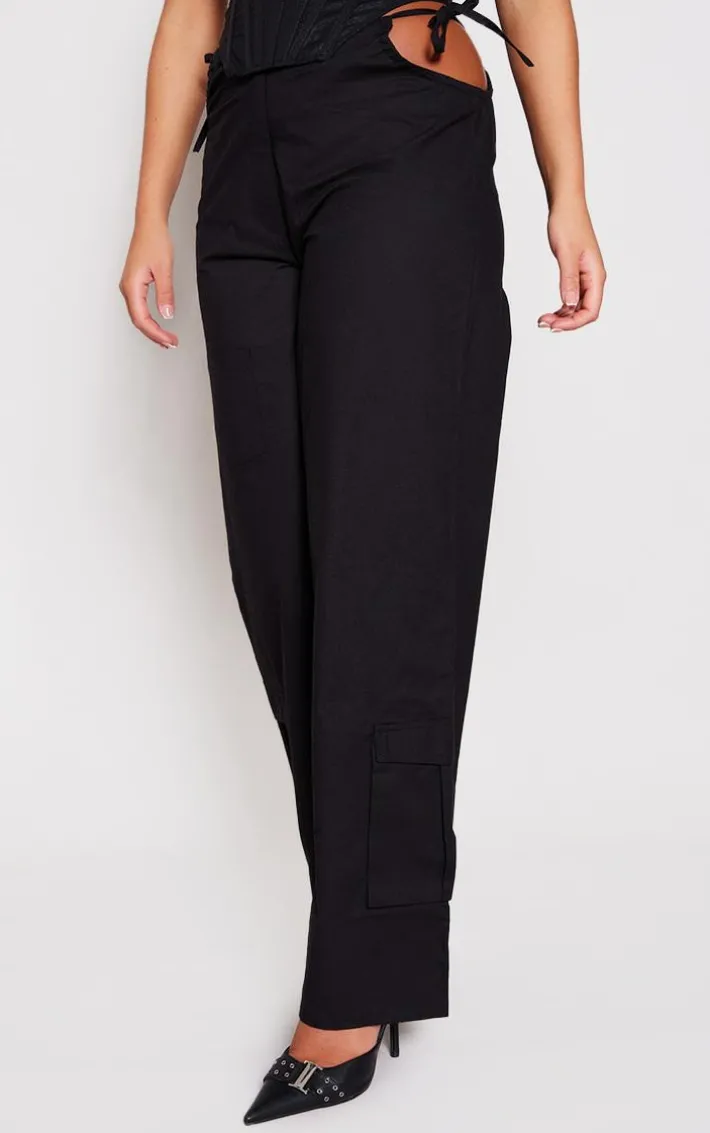 Your new season wardrobe wouldn’t be complete without these black cotton cut out tie side pants. Made using a black cotton material with a cut out design and tie side detail, these versatile pants will earn you all the compliments whatever your plans. Team with a matching hue top, heels and simple accessories for a flawless finish.