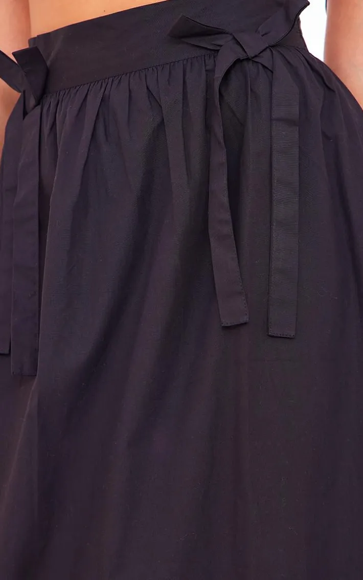 Your wardrobe is calling out for this black cotton poplin bow detail maxi skirt. Brought to you in a black cotton material with a poplin bow detail what more could you want? Its maxi length will turn heads no matter what. Team this unreal skirt with your fave accessories and heels for an Insta worthy finish.