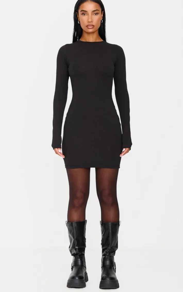 Look all kinds of chic in this black cotton tie scoop back mini dress. Made from a black hue cotton material with a tie fastening and scoop back design, this mini dress is all the new you need. Pair with sheer tights, knee high boots and simple accessories for a look like no other.