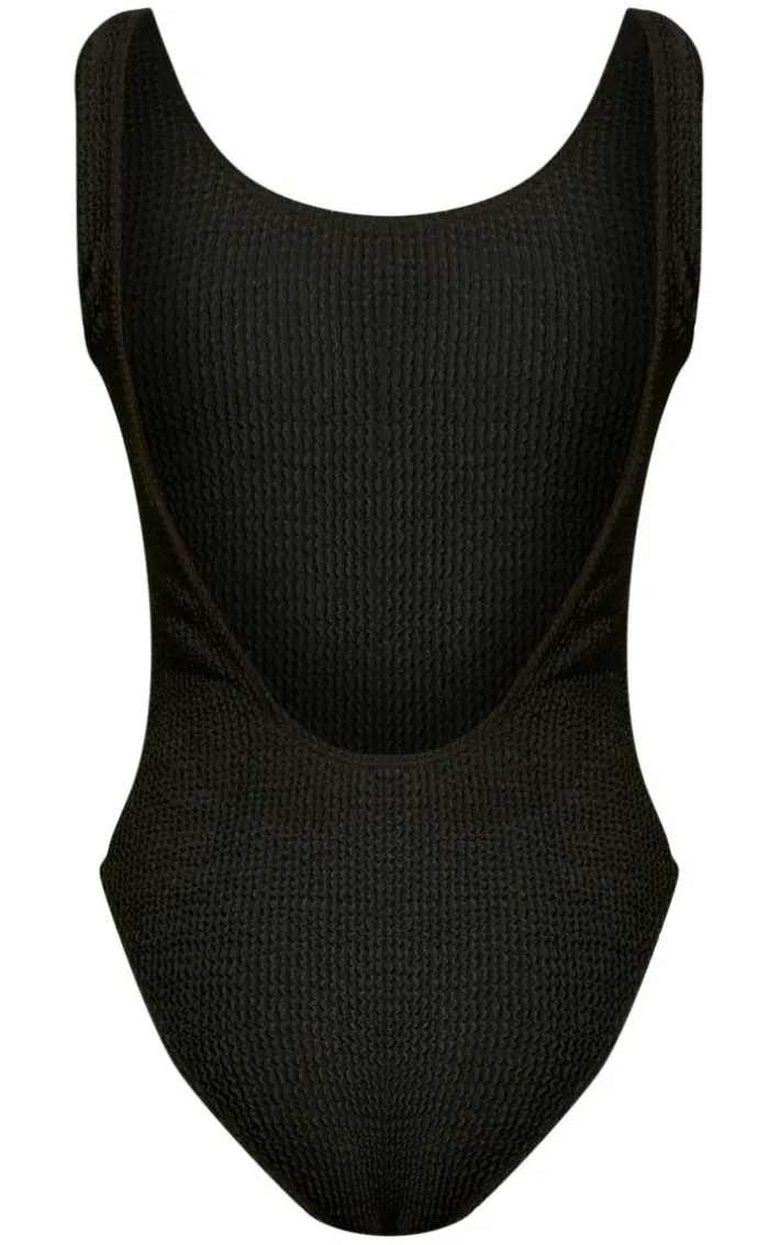 A vacay is calling your name and this swimsuit is on our hit list. Featuring a black crinkle material with a low scoop back and a figure-flattering fit. Team with some slides and sunnies for a look that won’t go unnoticed.