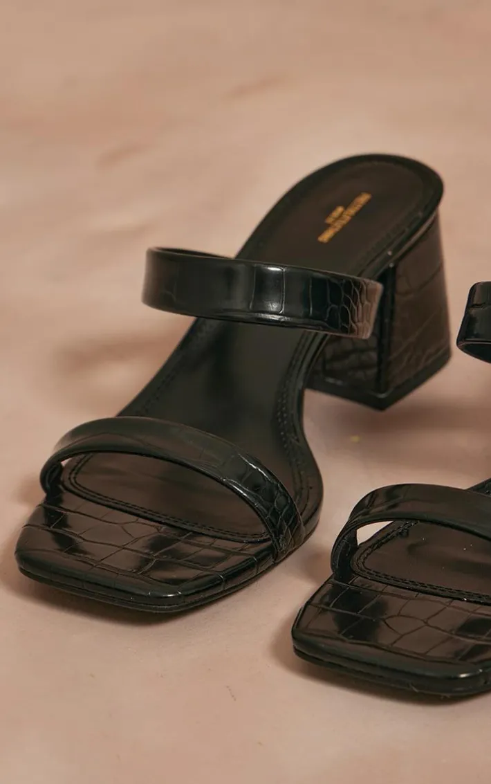 Create a look no one would forget with these black croc PU wide fit square toe block heeled mules. These mules are brought to you in a black croc PU material with a wide fit, a square toe and a block heel, how could you turn these down? These heels are calling your name. Style with your outfit of the day for a look like no other.